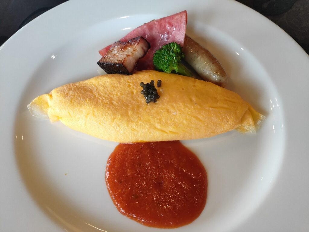卵料理は、オムレツ、スクランブルエッグ、サニーサイドアップの3種類から選べたので、最も自宅で作らないオムレツにしました。