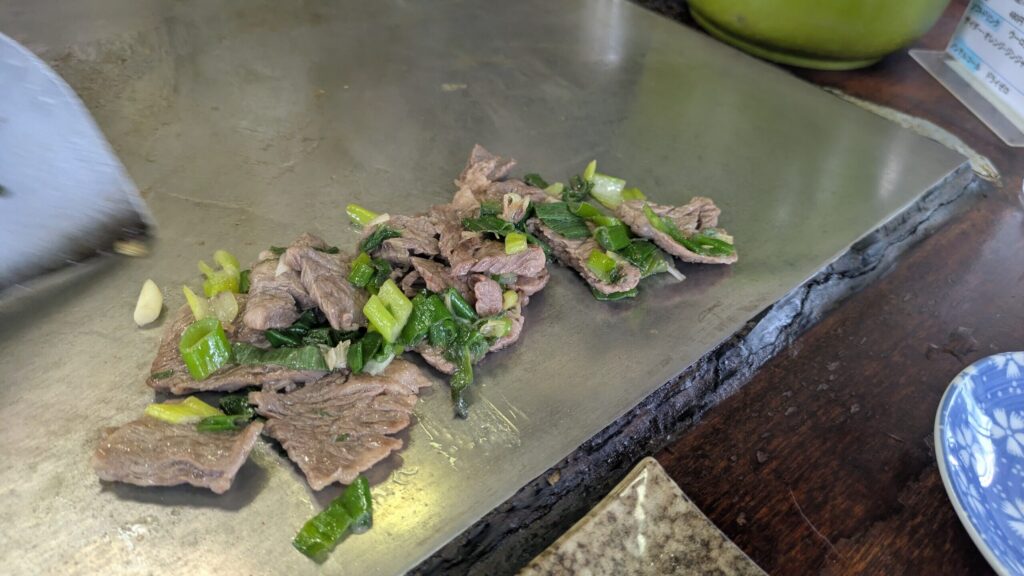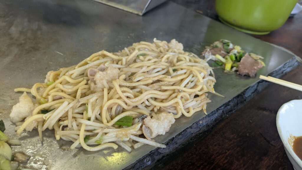 また調理の合間合間で鉄板に少し水をたらし、調理後の鉄板を綺麗にしていく様がなんとも芸術的で、惚れ惚れしました。