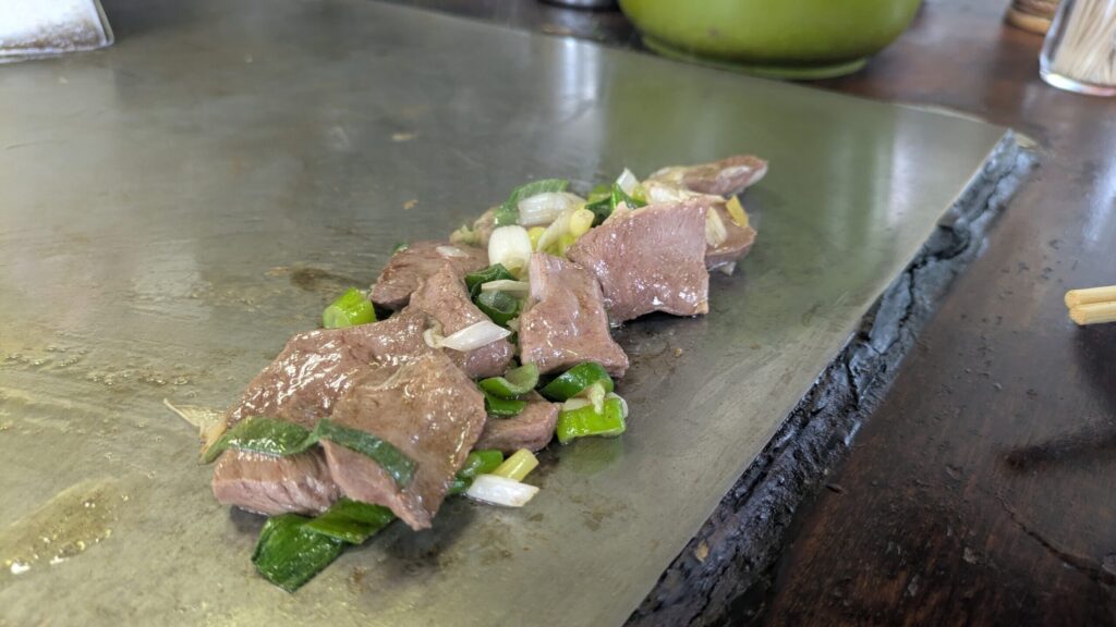 今回、鉄板の目の前に席だったので、店員さんが焼いてくれる様子を間近に見ることができ、それも楽しかったです。