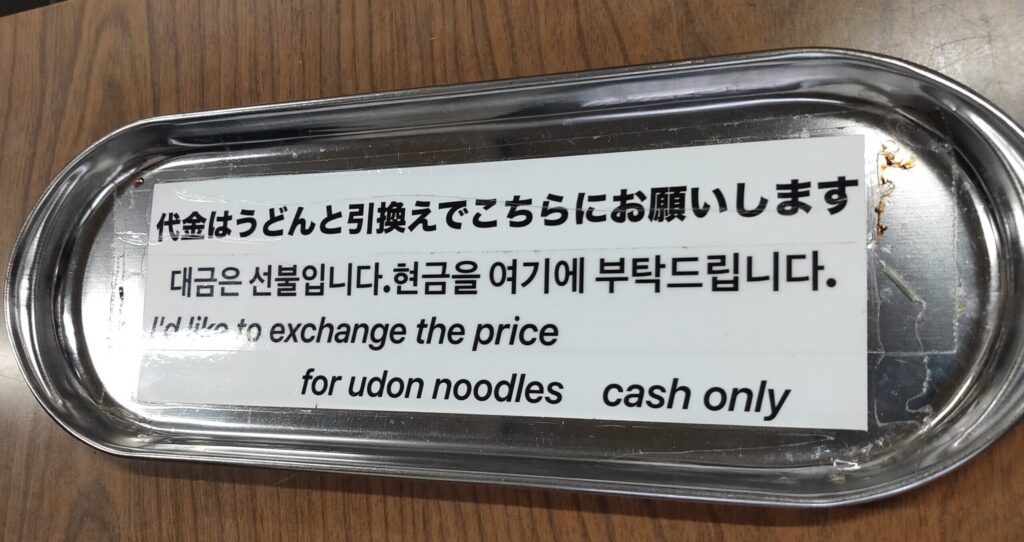 支払いはうどんと引き換えになるので、注文を済ませたらテーブルに準備しておきます。