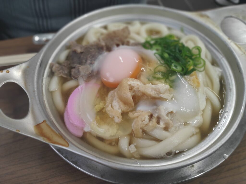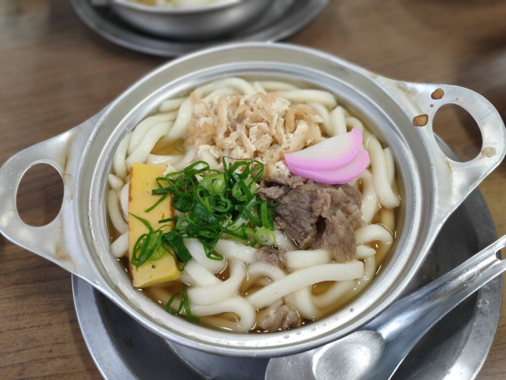 ここから松山市内へ再び戻り、松山のソウルフードと言われている鍋焼きうどんをいただきます。