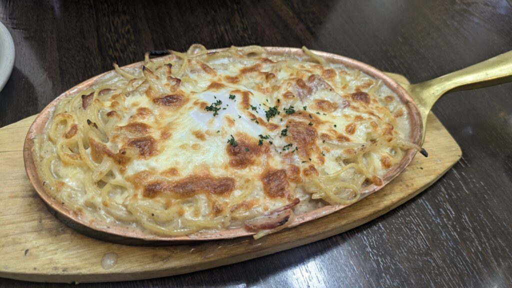 普通のパスタもいいけれど、熱々で提供されるこのスパゲッティグラタン、癖になる一品でした。