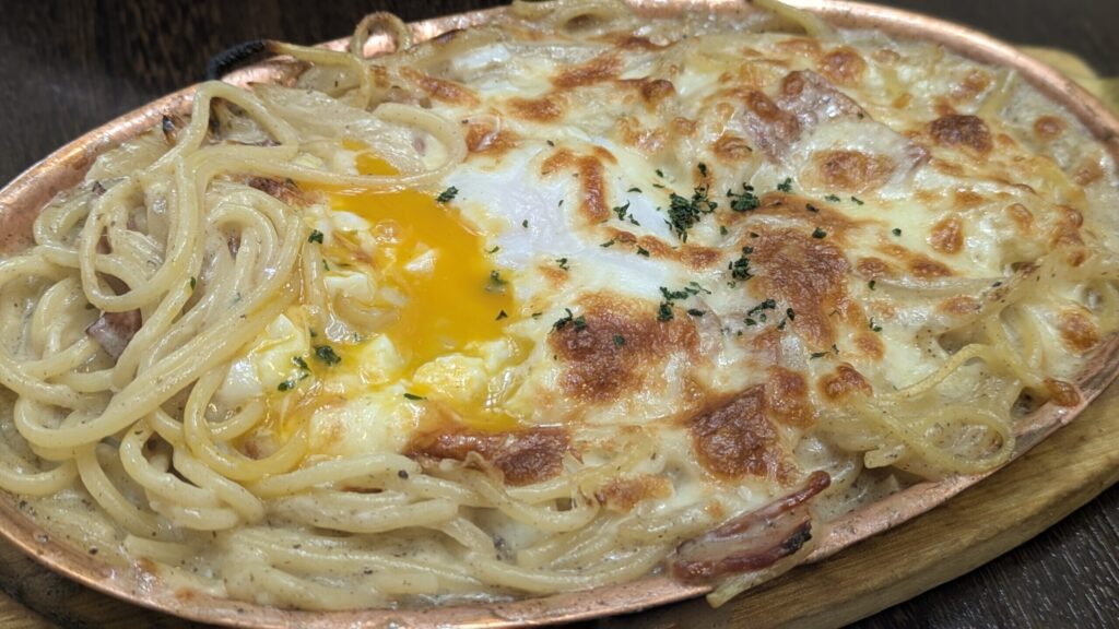 スパゲッティグラタンとはなんぞや、初めての出会いに期待が高まります。