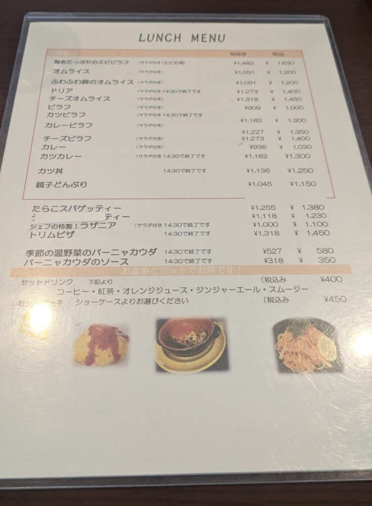 前回注文したのは、私が「トリムランチ」で夫が「オムライス」でした。
