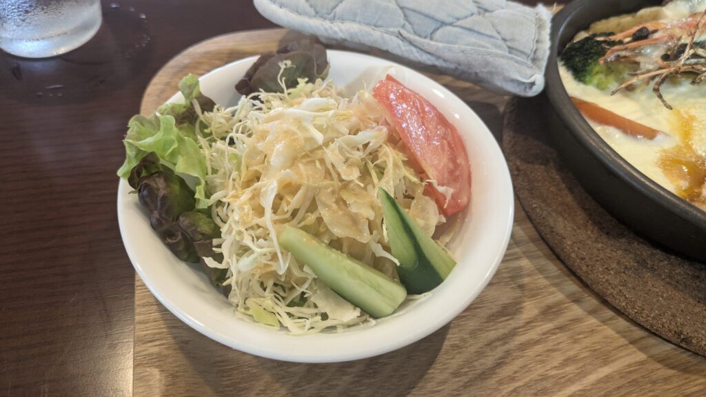 サラダもたっぷり、野菜がしっかりいただけるのも嬉しいですね。